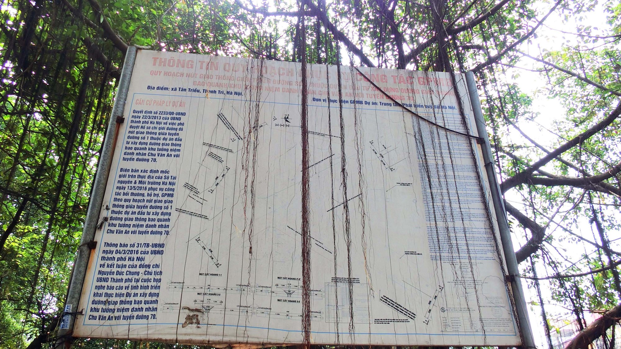 Hình ảnh tấm biển thông tin quy hoạch phục vụ công tác GPMB dự án bạc màu sau nhiều năm dự án đình trệ.