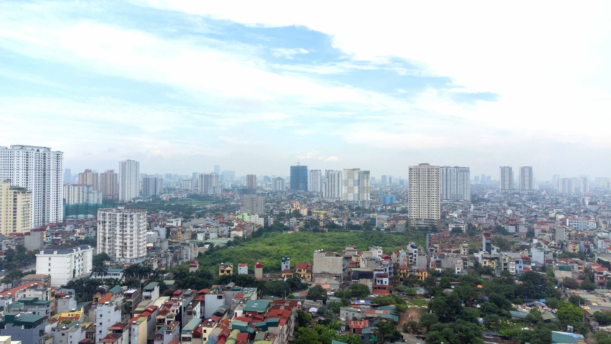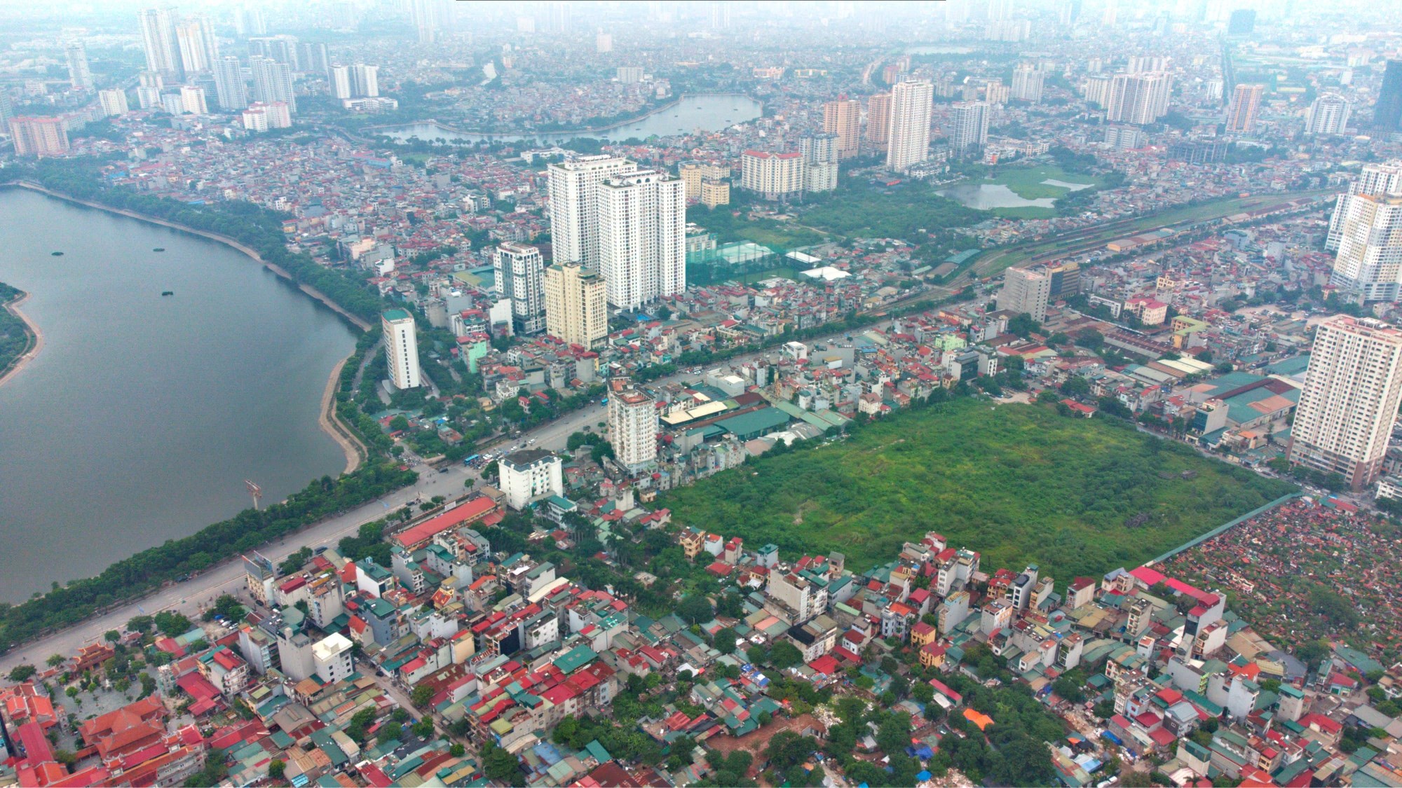 Hình ảnh từ dự án hướng về phía Khu đô thị Đồng Tàu và khu đất dự kiến sẽ xây Khu chức năng đô thị Trũng Kênh. Phía xa là hồ Yên Sở và khu đô thị Gamuda.