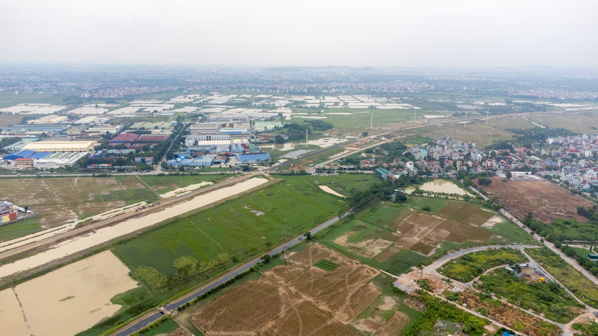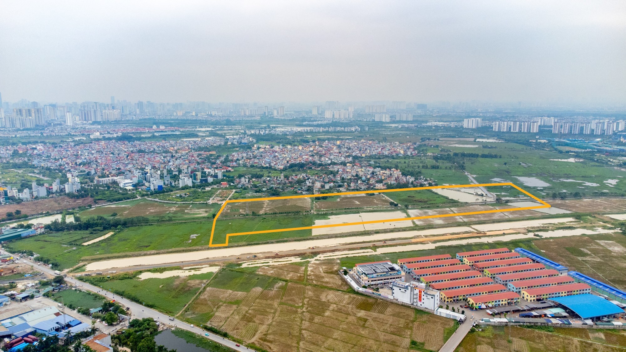 Mặt tiền phía tây nam của dự án giáp với đất trồng lúa và đường Vành đai 4 đang thi công; phía đông bắc giáp với khu dân cư cũ; phía đông nam và tây bắc là các khu đất hiện hữu.