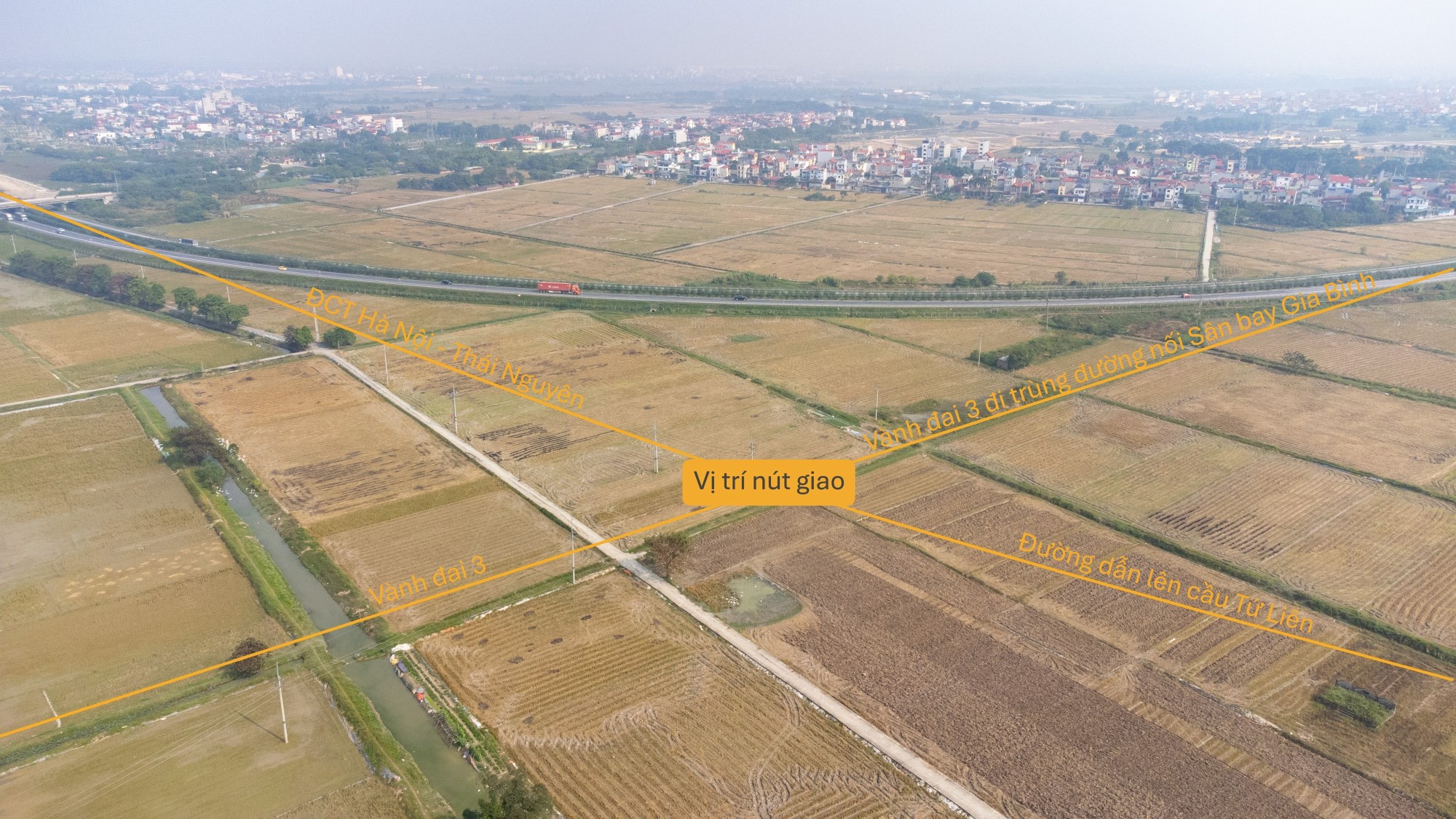 Trong đó có nút giao kết nối đường dẫn lên cầu Tứ Liên và ba nhánh cao tốc gồm: Vành đai 3, Cao tốc Hà Nội - Thái Nguyên và Vành đai 3 đoạn chạy trùng đường đi sân bay Gia Bình. Nút giao này nằm trên địa bàn xã Đông Anh, TP Hà Nội.
