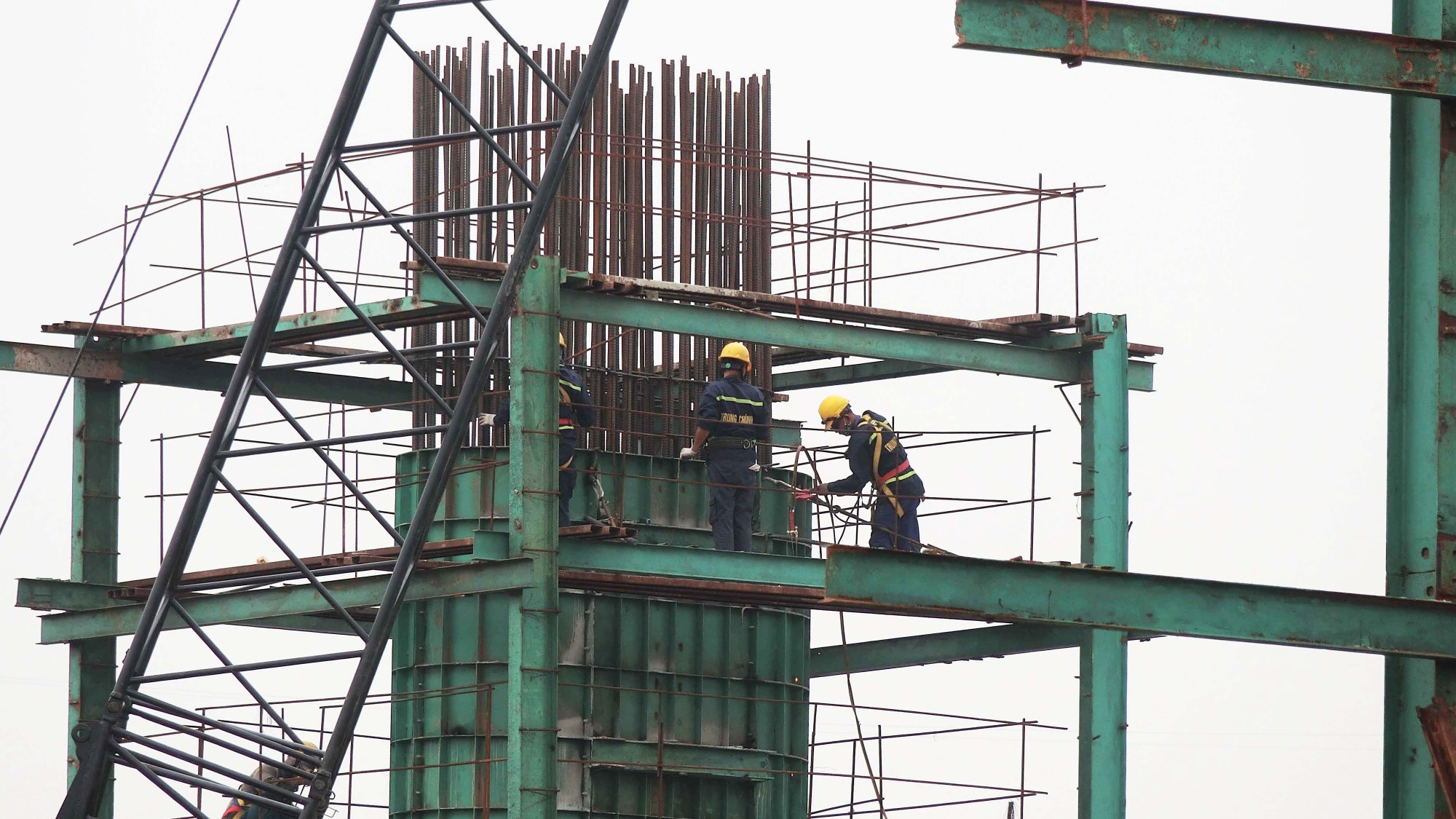 Hàng trăm công nhân, kỹ sư tập trung trên công trường nhằm đẩy nhanh tiến độ dự án.