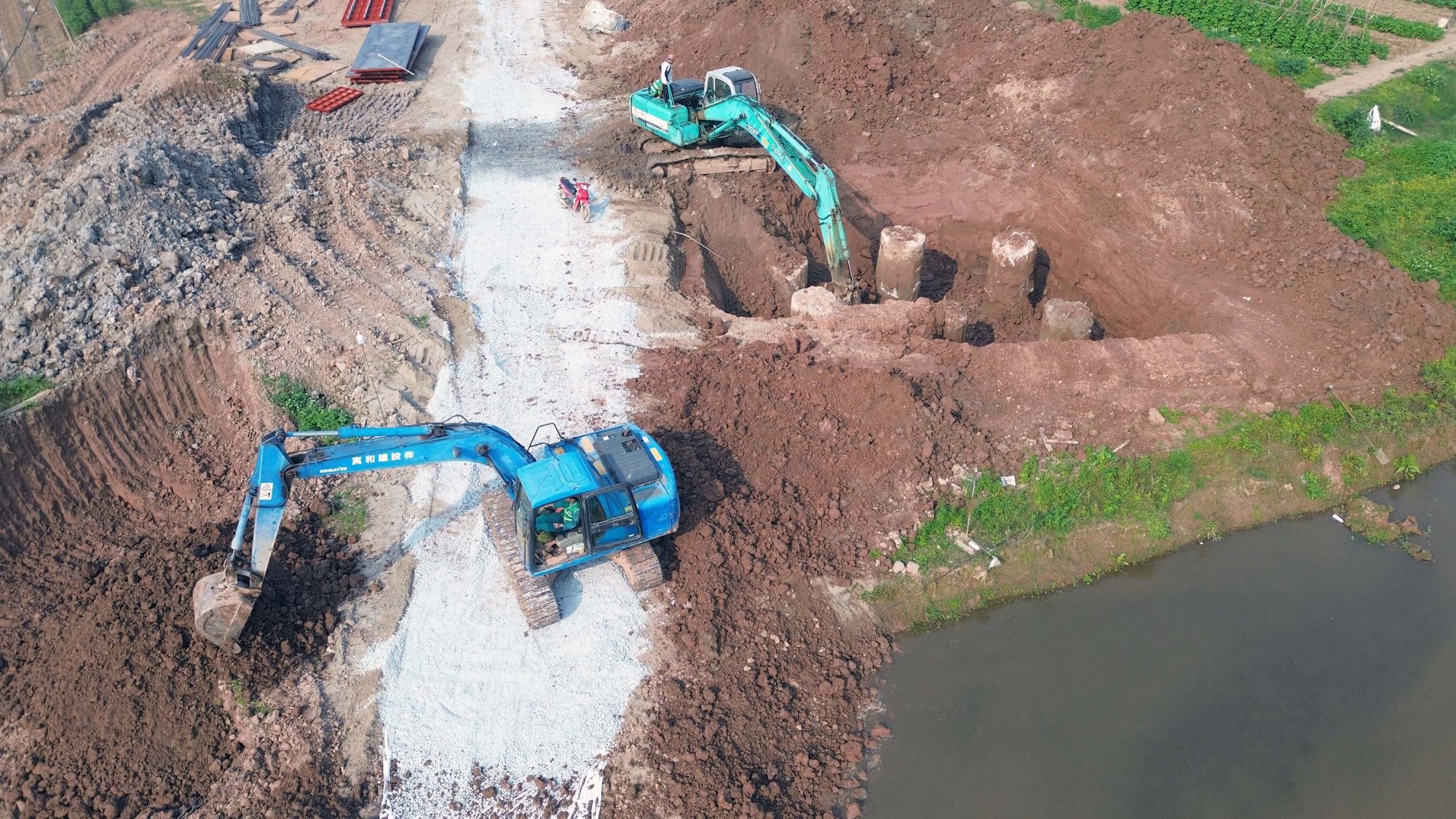 Dù vậy, các đơn vị thi công vẫn đang tận dụng tối đa những mặt bằng đã sạch để triển khai trước, đặc biệt là thi công trụ cạn và đường dẫn. Trong ảnh là khu vực thi công trụ cạn vượt đê sông Hồng phía Hưng Yên.