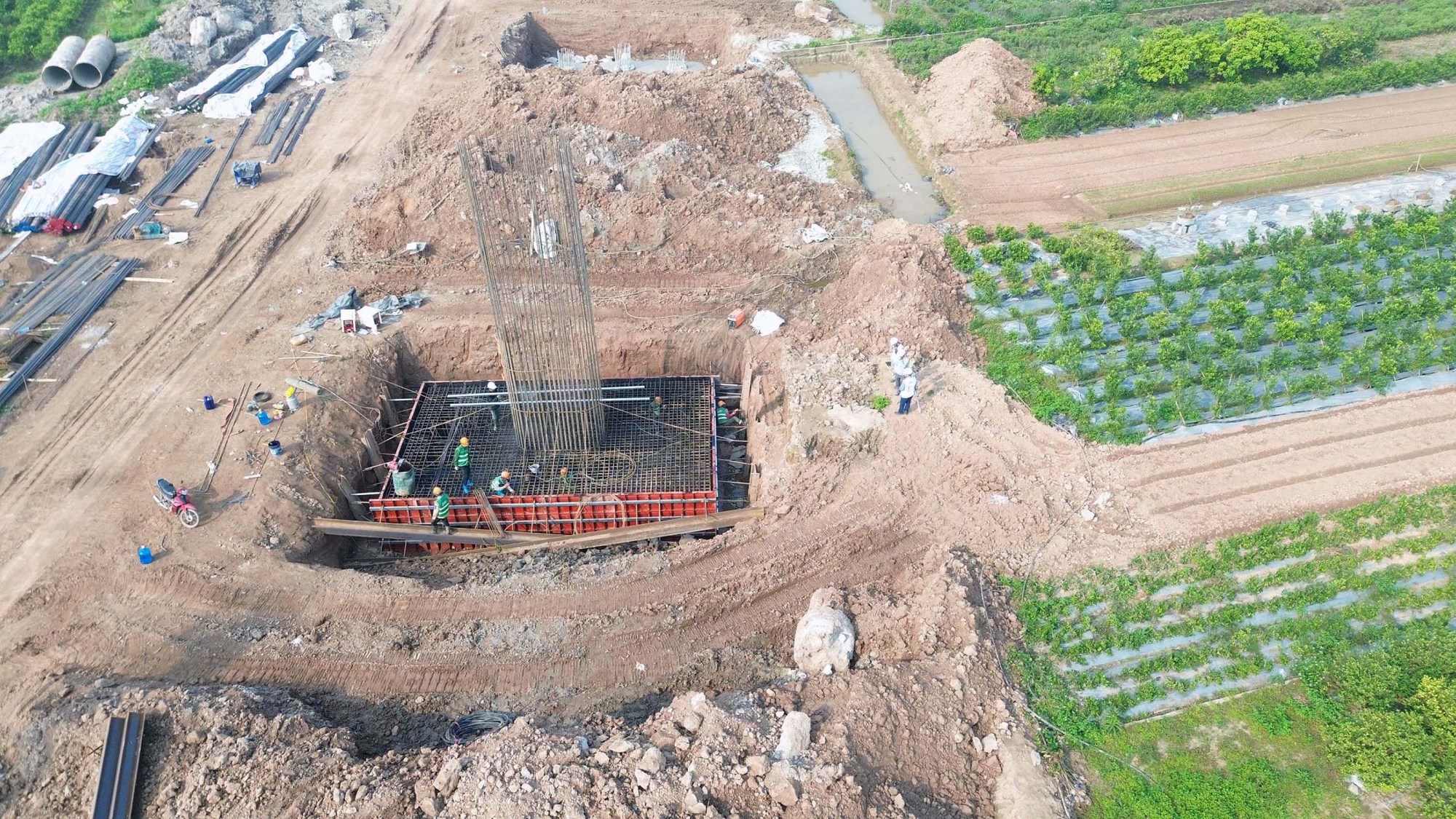 Ghi nhận thực tế cho thấy, phần cầu chính đang bước vào giai đoạn thi công móng trụ, trong đó nhiều trụ đã được khoan cọc nhồi và chuẩn bị đổ bê tông thân trụ.