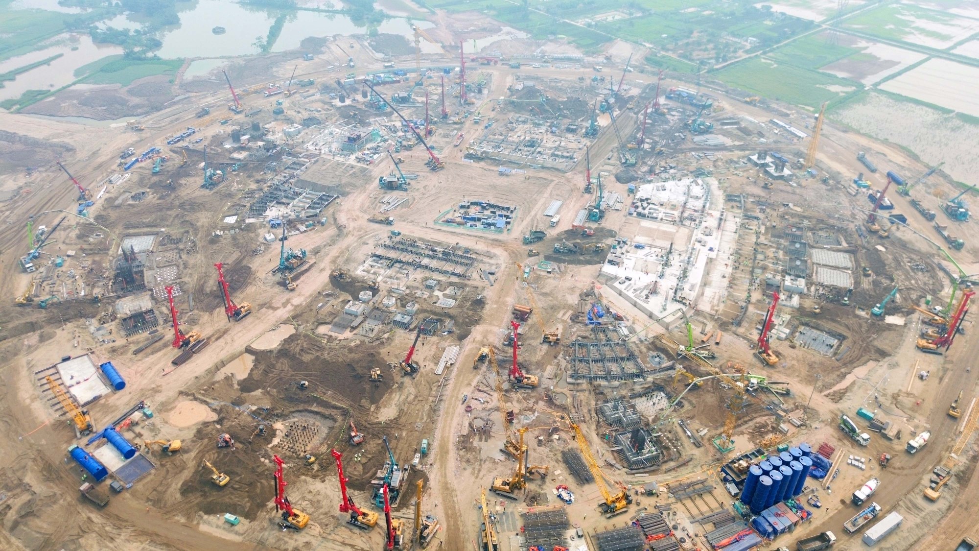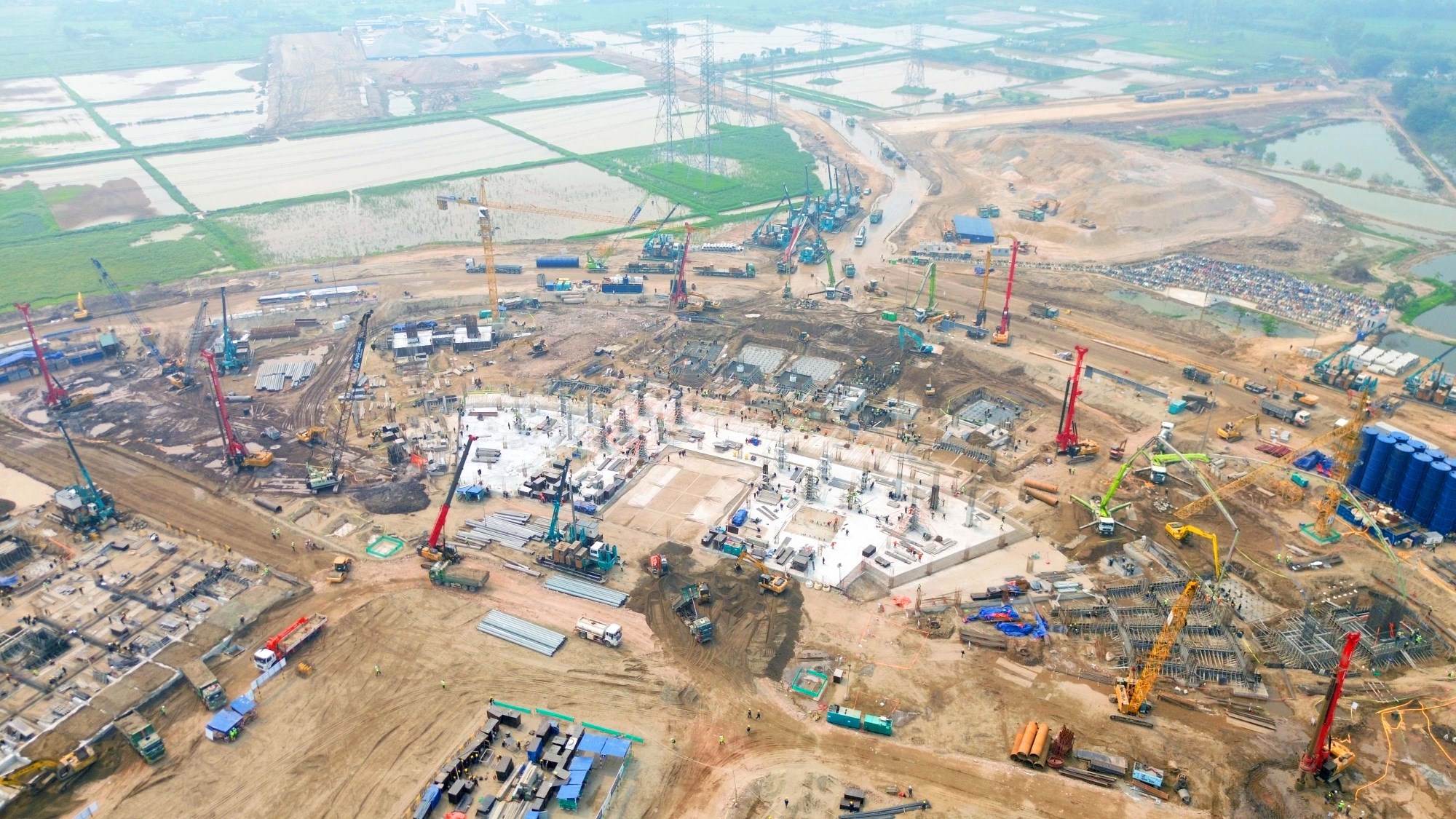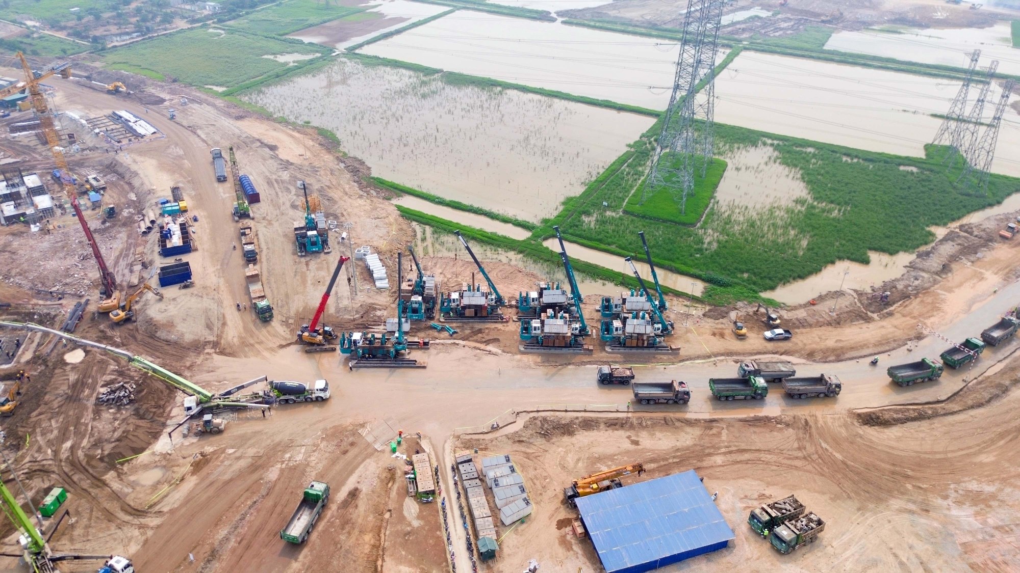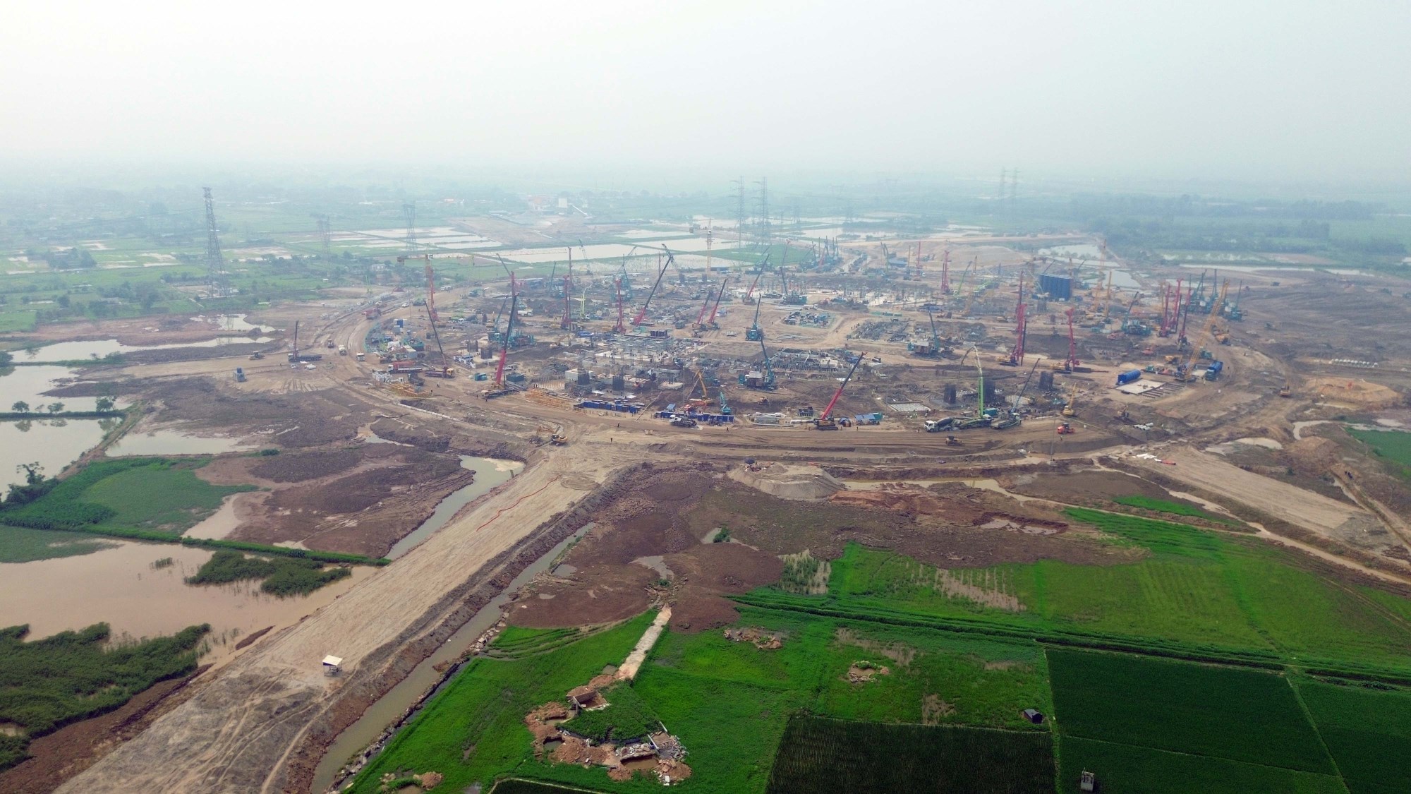 Phần lớn diện tích triển khai dự án trước đây là đất nông nghiệp và đang tiếp tục được đào đắp, san lấp và hoàn thiện nền để đáp ứng tiến độ thi công chung của công trình.