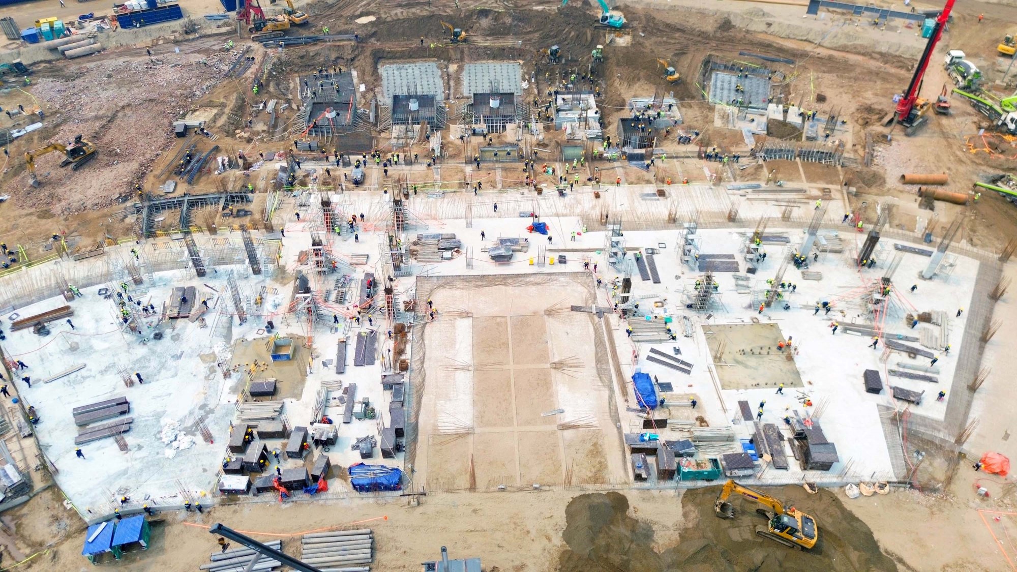 Sau hơn 3 tháng kể từ ngày khởi công, khu vực triển khai sân vận động Hùng Vương trong giai đoạn thi công nền móng với nhịp độ khẩn trương.