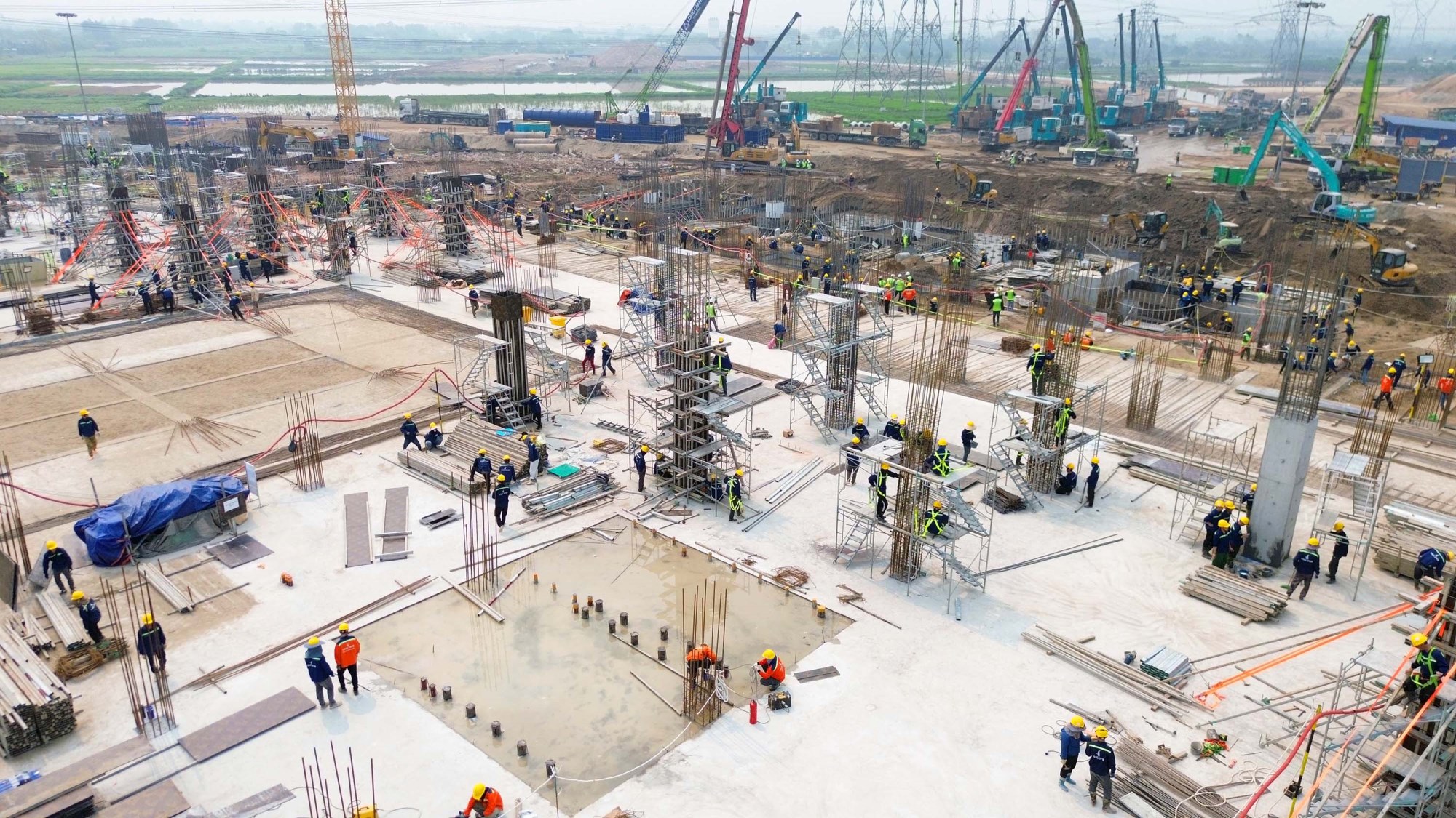 Nhiều vị trí đã bắt đầu xuất hiện các cụm móng, hệ thống cọc bê tông và những dấu hiệu đầu tiên định hình công trình.