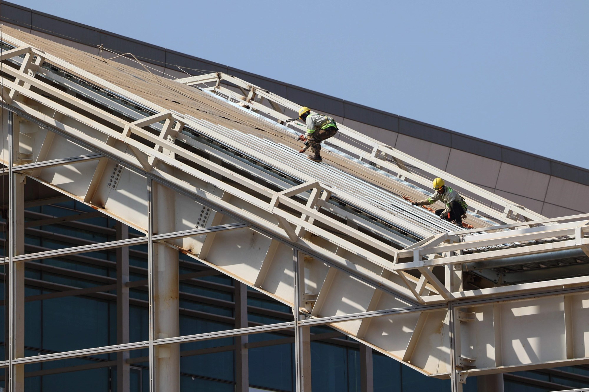 Ba "cánh sen" hướng ra ngoài cũng xong cơ bản phần lợp mái, các ống lồng dần thành hình. Hiện công nhân tất bật thi công các công đoạn cuối cùng của phần mái, hoàn thành phần xây dựng trước 19/12.