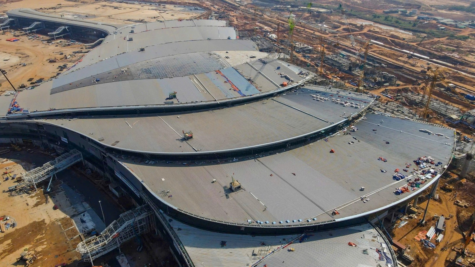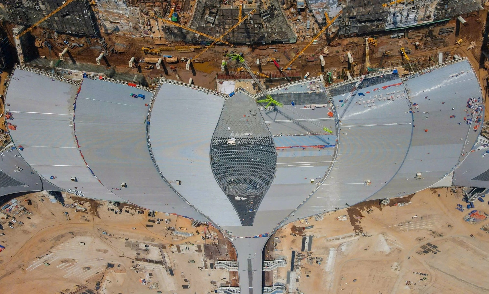 Ngày 26/11, từ góc trên cao diện mạo nhà ga hành khách sân bay Long Thành đã rõ nét như "cánh hoa sen". Đây là công trình được xem là "trái tim" của dự án sân bay Long Thành.