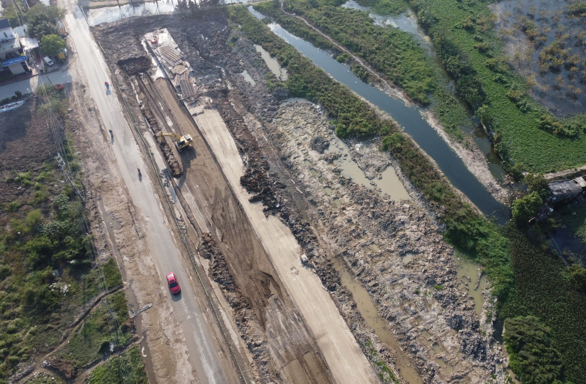 Theo quan sát, dự án đang được san mặt bằng với chiều rộng khoảng 40 m.