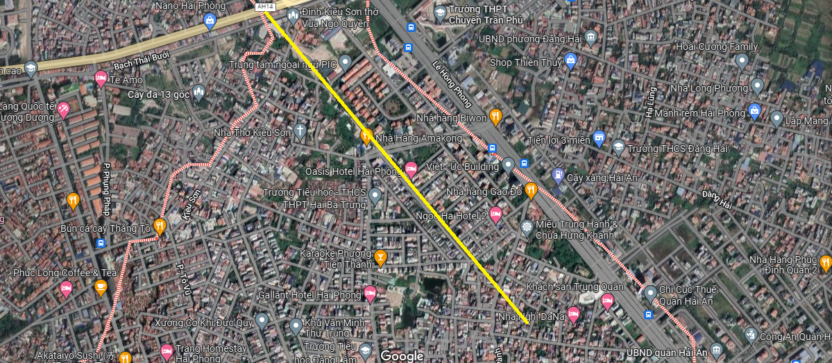 Đường sẽ mở theo quy hoạch ở phường Đằng Lâm theo Bản đồ Đồ án quy hoạch phân khu tỷ lệ 1/2000 quận Hải An, TP Hải Phòng đến năm 2025. (Đường kẻ màu vàng).