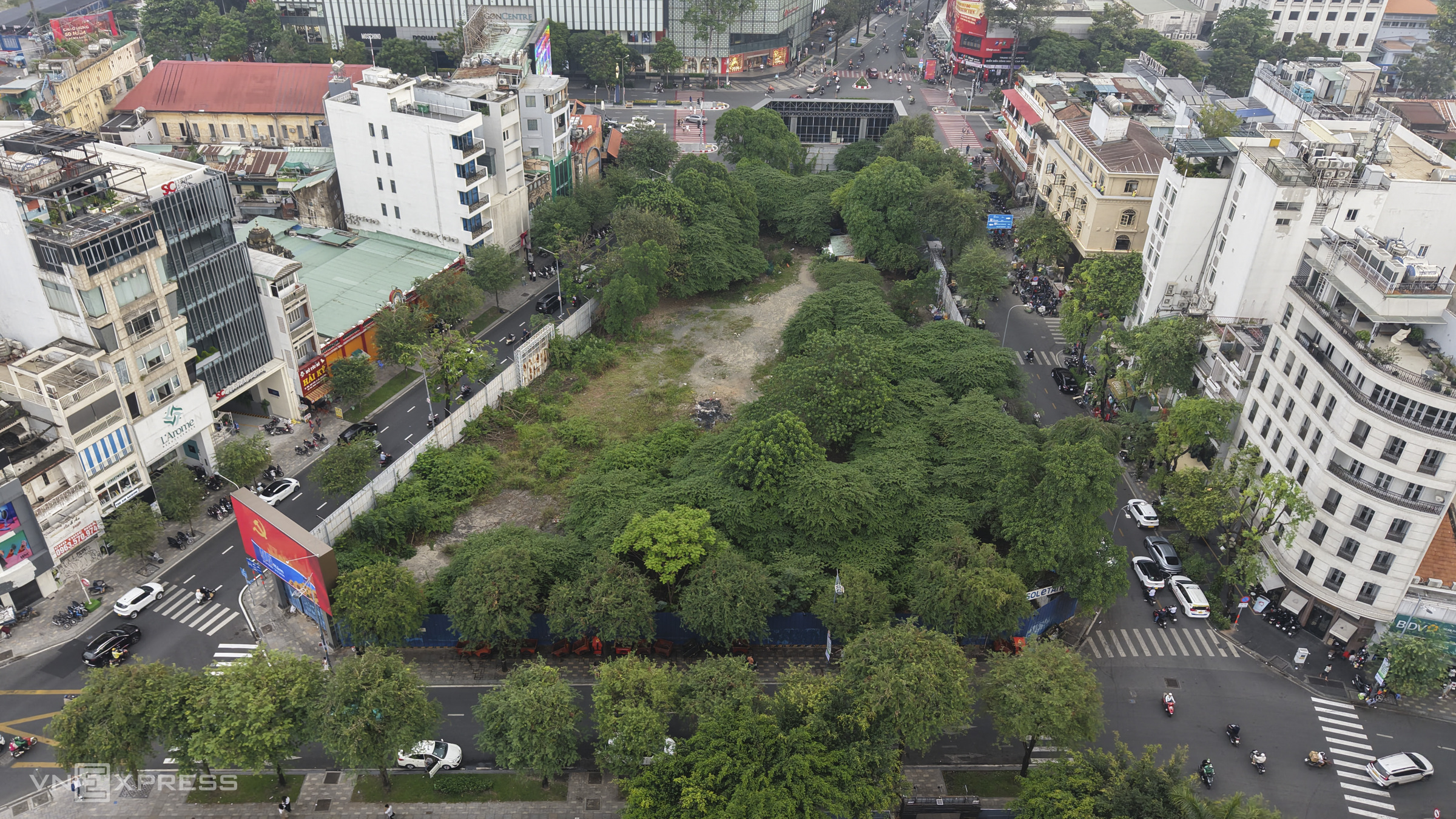 Gần đó, khu tứ giác Lê Thánh Tôn – Nam Kỳ Khởi Nghĩa - Nguyễn Trung Trực - Lê Lợi (dự án tòa nhà SJC, trước đây là ITC) rộng gần 4.000 m2 hiện bị rào kín, cỏ mọc um tùm, bỏ hoang nhiều năm.