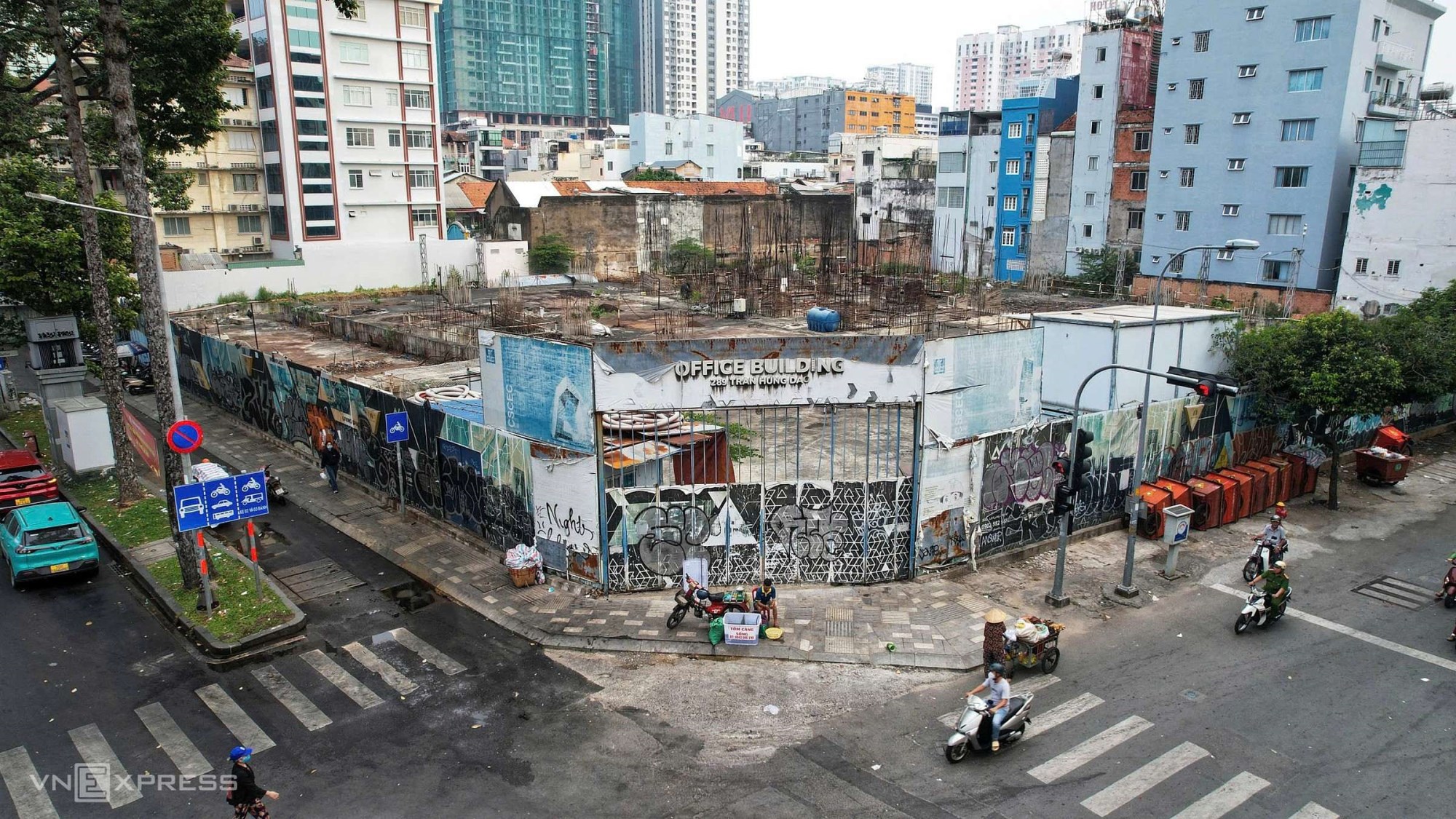 Hai khu đất 87 Cống Quỳnh (trái) và 74 Hồ Hảo Hớn (phải) cách nhau khoảng 300 m đang được trưng dụng vào nơi giữ ôtô và để trống. Hai bất động sản theo thiết kế là cao ốc phức hợp đã xây dựng phần móng, bêtông cốt thép nhưng đã tạm dừng nhiều năm trước.