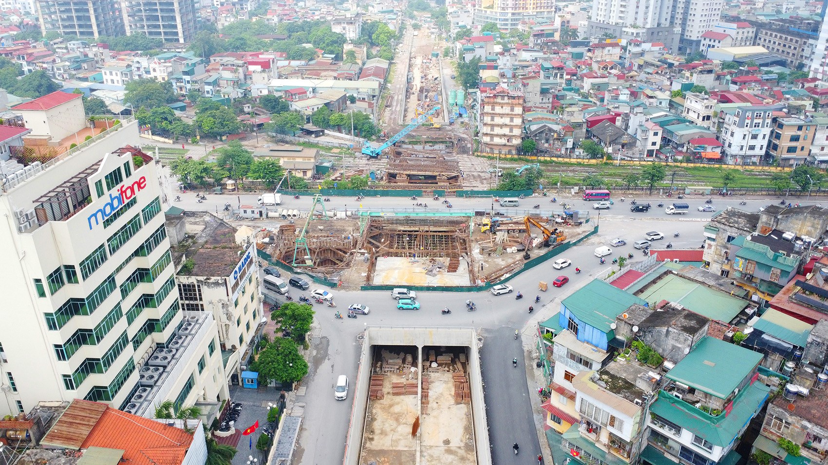 Các đốt hầm phía Đầm Hồng và Kim Đồng đã cơ bản hoàn thành. Hiện đơn vị đang hoàn thiện các hạng mục tuyến và công trình trên tuyến để đấu nối hạ tầng kỹ thuật với đường Định Công.
