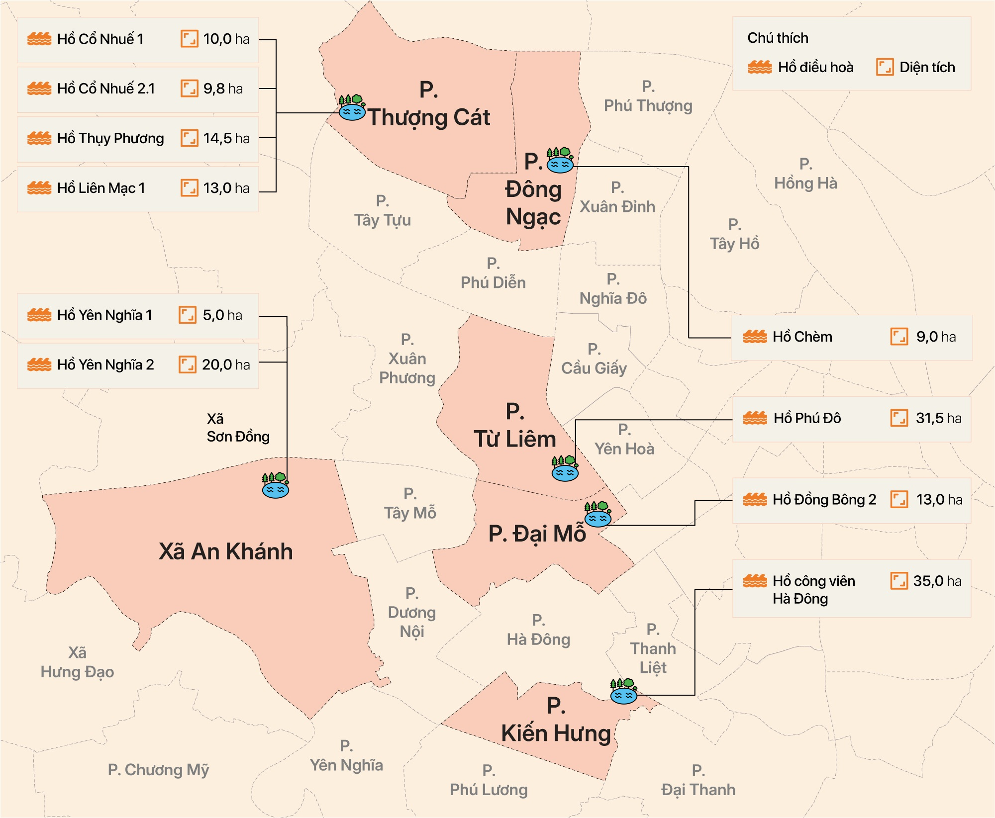 UBND TP Hà Nội vừa công bố kế hoạch khắc phục tình trạng úng ngập trên địa bàn. Trong đó, chỉ đạo đầu tư xây dựng khẩn cấp trước mùa mưa 2026 hàng loạt hồ điều hòa ở các phường Thượng Cát, Đông Ngạc, Từ Liêm, Đại Mỗ, Kiến Hưng và xã An Khánh.
