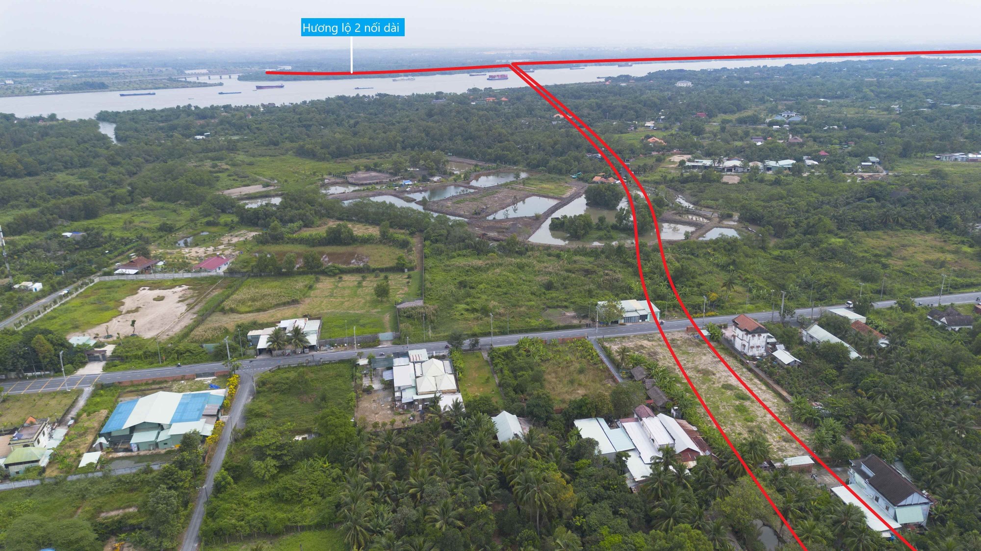 Vừa qua, HĐND tỉnh Đồng Nai cũng đã thông qua nghị quyết về chủ trương đầu tư Hương Lộ 2 (đoạn từ quốc lộ 51 đến cao tốc TP HCM - Long Thành - Dầu Giây) theo phương thức PPP, tổng mức đầu tư dự án hơn 5.800 tỷ đồng. Trong ảnh, hai vạch màu đỏ là khu vực Hương lộ 2 sẽ đi qua, vạch màu vàng là cầu Đồng Nai 2.