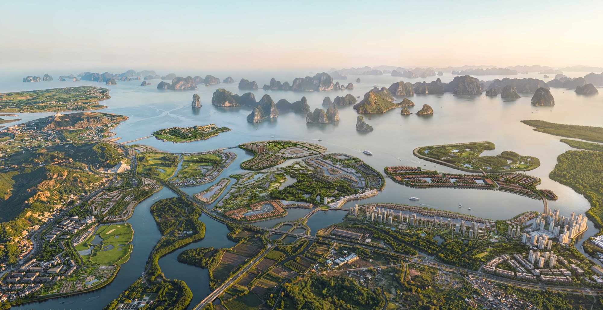 Đáng chú ý, ngoài mặt biển ở phía đông, trong khuôn viên dự án sẽ có 680 ha mặt nước biển tự nhiên, chủ đầu tư cũng sẽ thiết kế tổng số 200 km đường bờ biển với cát trắng.