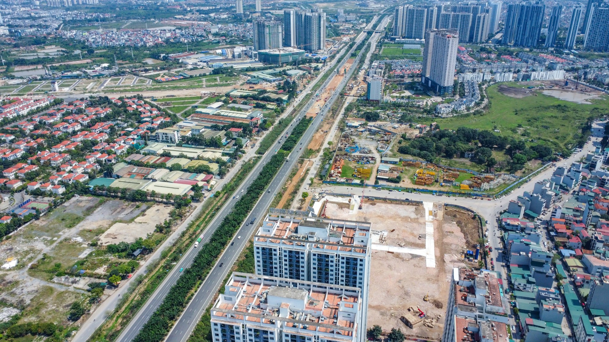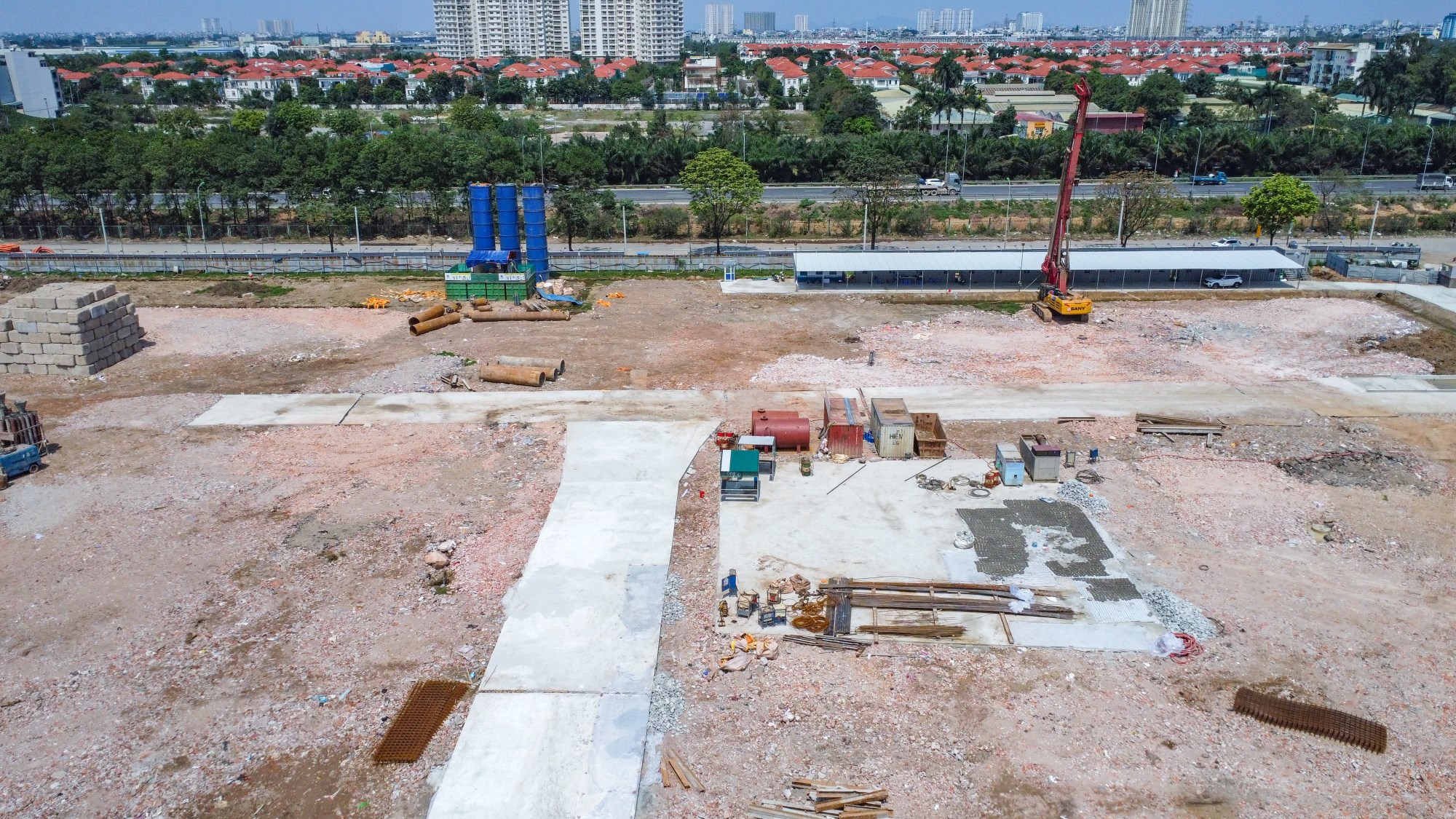 Mặt tiền đường gom Đại lộ Thăng Long của dự án hiện nay.