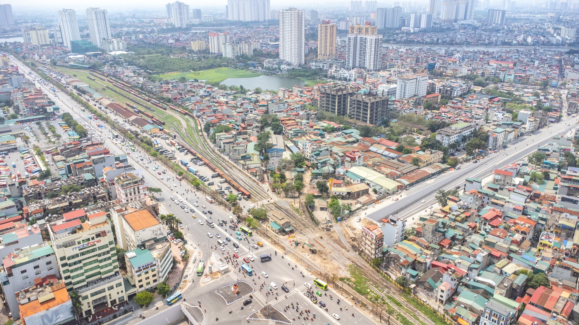 Xung quanh khu vực này hiện tập trung khá nhiều tòa chung cư, nổi bật có tòa T&T DC Complex, Chung cư 96 Định Công, Geleximco Southern Star, Tổ hợp Imperial Plaza 360 Giải Phóng với tòa The Queen đang mở bán. Trong hình ảnh, đối diện bên kia đường Giải Phóng là bến xe Giáp Bát và Hồ Kim Đồng.