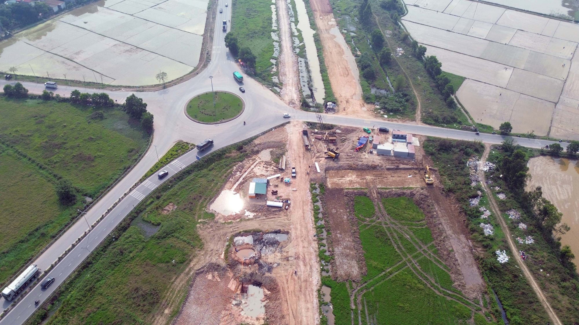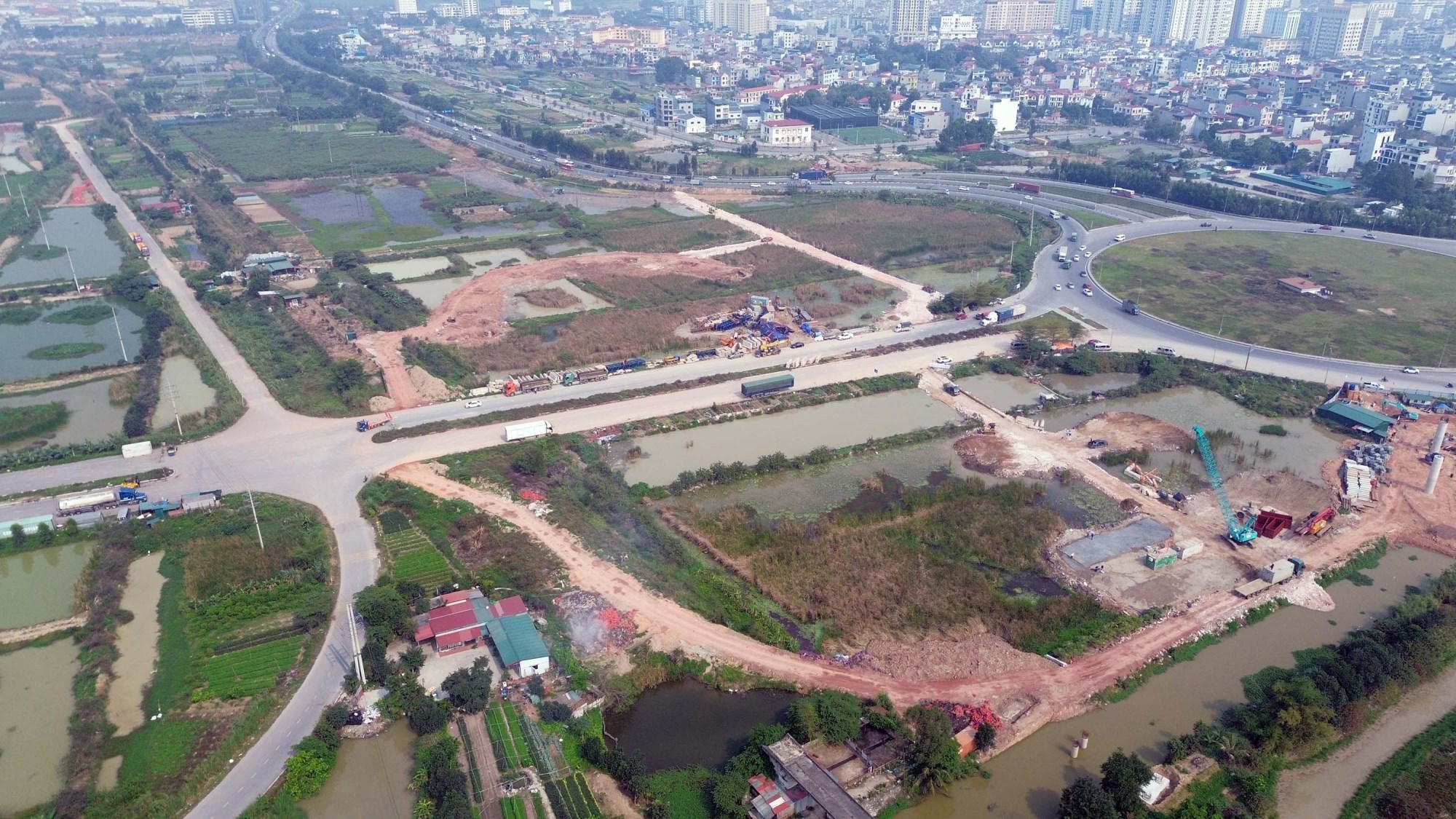 Khu vực công trường, các nhánh đường kết nối đã cơ bản định hình mặt bằng.