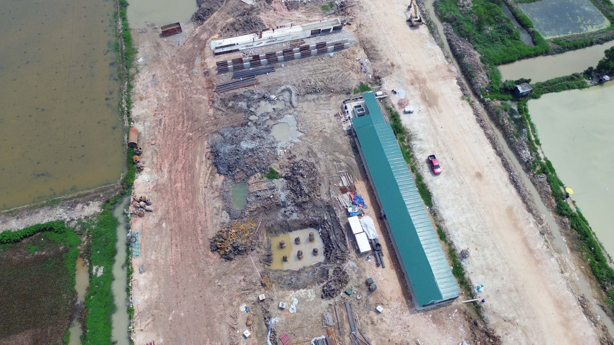 Ngoài ra, một số đoạn khác vẫn đang trong giai đoạn xử lý nền đất yếu, thi công dở dang hoặc chưa hoàn thiện các hạng mục phụ trợ, cho thấy dự án vẫn cần thêm thời gian để có thể đồng bộ toàn tuyến. Trong ảnh là đoạn cuối tuyến thuộc phường Nam Sơn, kết nối với Vành đai 4.