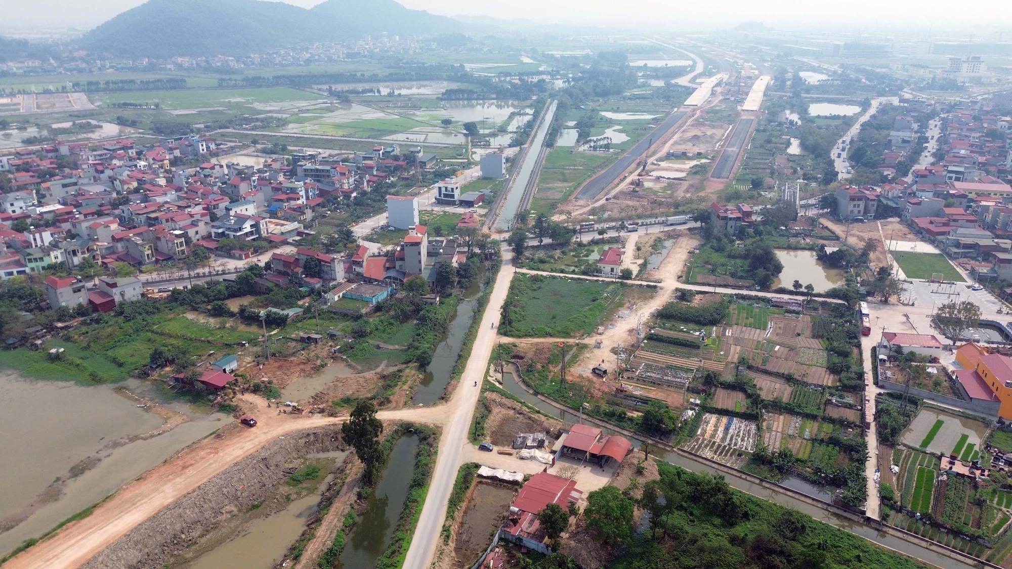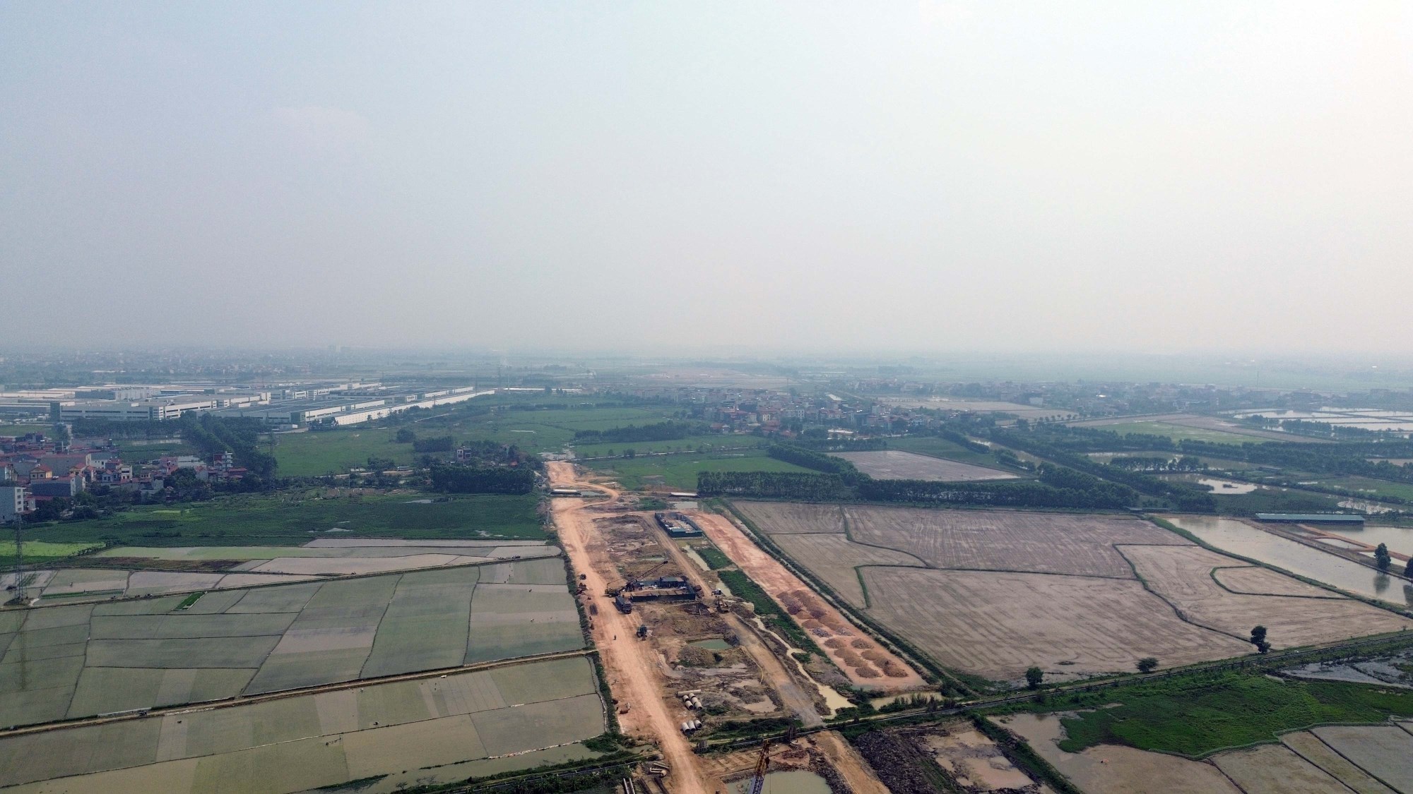 Dự án đoạn từ nút giao Khả Lễ đến Vành đai 4 có chiều dài khoảng gần 10 km, đang được đầu tư xây dựng mới nhằm hoàn thiện trục cao tốc Nội Bài – Bắc Ninh – Hạ Long theo quy hoạch. Trong ảnh là đoạn gần QL38 hướng về KCN Nam Sơn - Hạp Lĩnh.