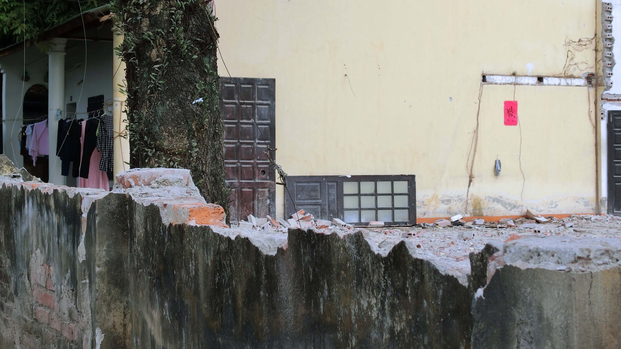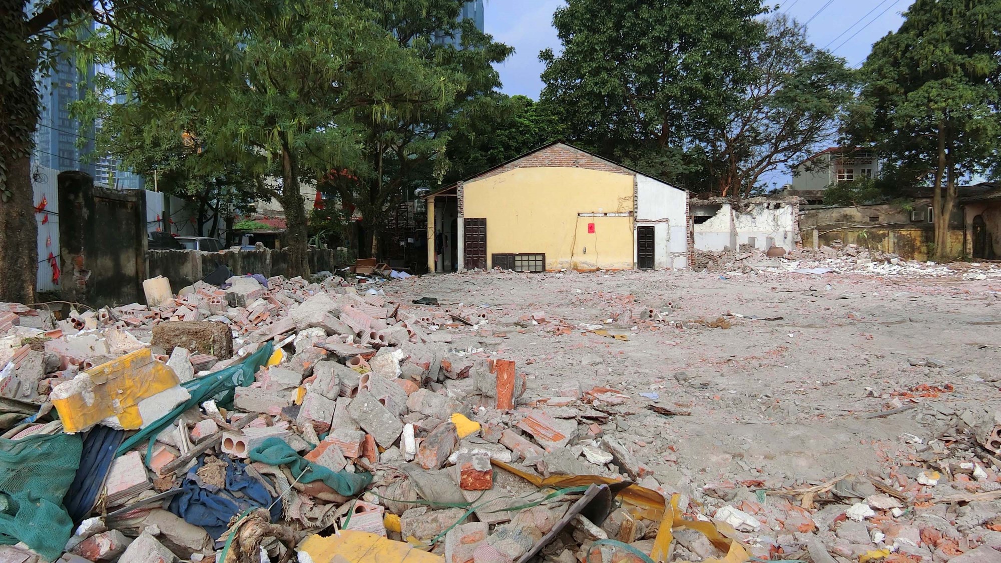 Phần còn lại, gồm một phần nhà cấp 4 và toàn bộ khu tập thể 2 tầng cũ, vẫn chưa được giải phóng.